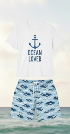 Họa tiết: Có thể là áo trơn hoặc in các hình nhỏ liên quan đến biển như: cây dừa, sóng biển, vỏ sò, hoặc các dòng chữ slogan mùa hè.